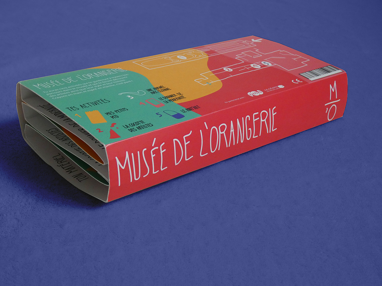 This project was developed around the Musée de l'Orangerie in Paris. As a group, it was a question of designing and producing packaging intended for children, from the age of 7, who are then able to read and sensitive to graphics. This packaging, in the form of a small suitcase, offers equipment and five activities to do in the museum for some, and which can be continued at home for others. This project will be offered at the Musée de l'Orangerie , and a partnership is possible with the museum of modest arts of the city of Sete. Project made with Romane Mercadal and Ambre Pichereau, with the help of Lucie Buseine.