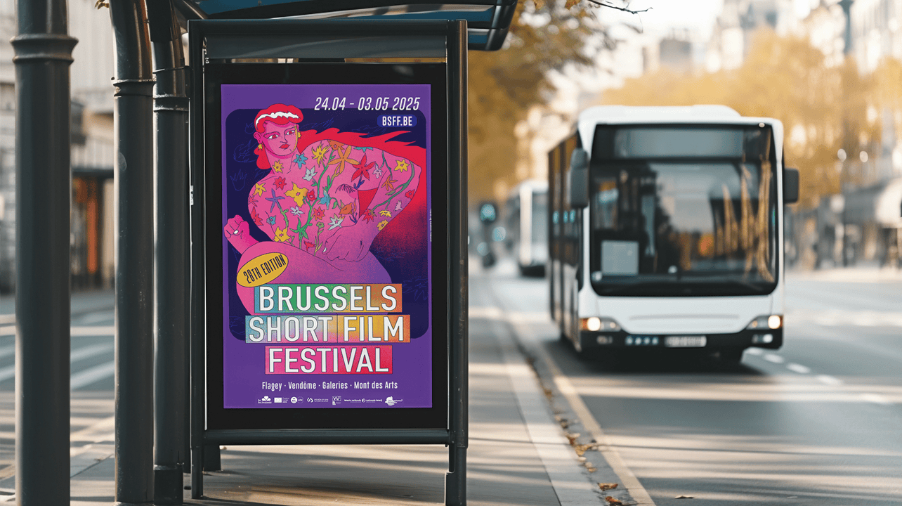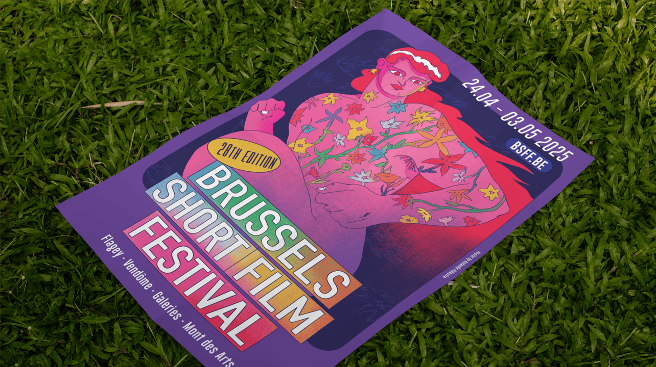 The poster is inspired by the central theme of this 28th edition, Freedom. At the heart of this vision is a figure in motion, running forward with determination, symbolising vital momentum and self-assertion. This dynamic gesture captures the essence of freedom: a resolute choice to progress and surpass oneself. The flower tattoos that adorn the character's skin embody the freedom to be oneself and creative self-expression, while celebrating diversity. The poetic and energetic design invites us to reflect on the many forms that freedom can take, while recalling the BSFF's colourful springtime character.
