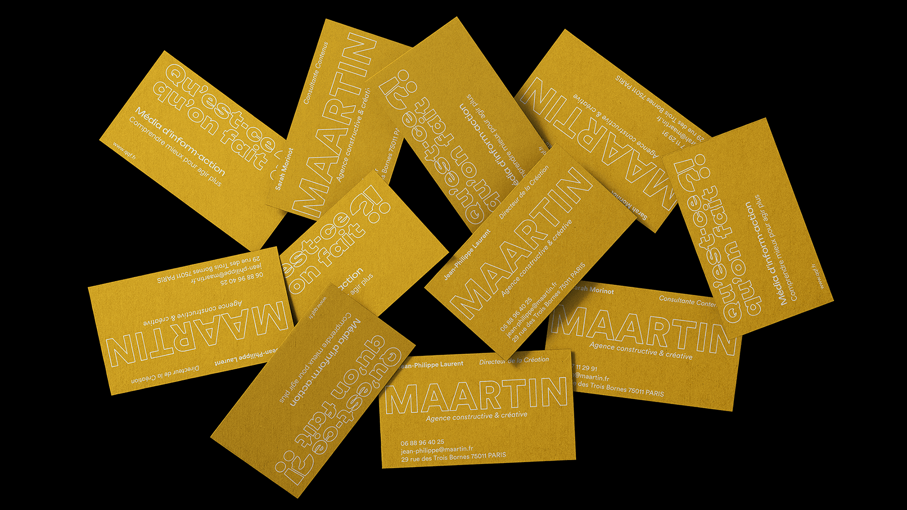 The challenge was to create a card that was printed ecological to reflect the identity and values of the studio. As well as a creative studio, MAARTIN has a coffe bookshop in Paris called Bookster. It was printed at