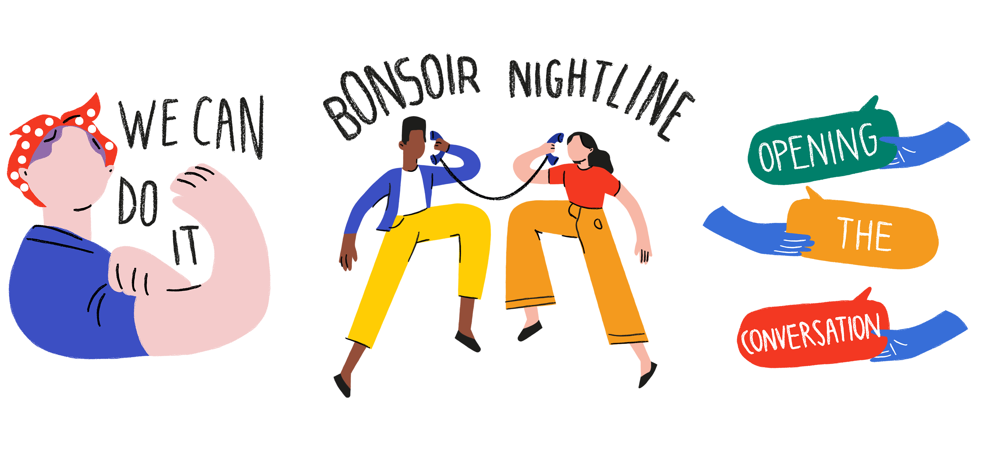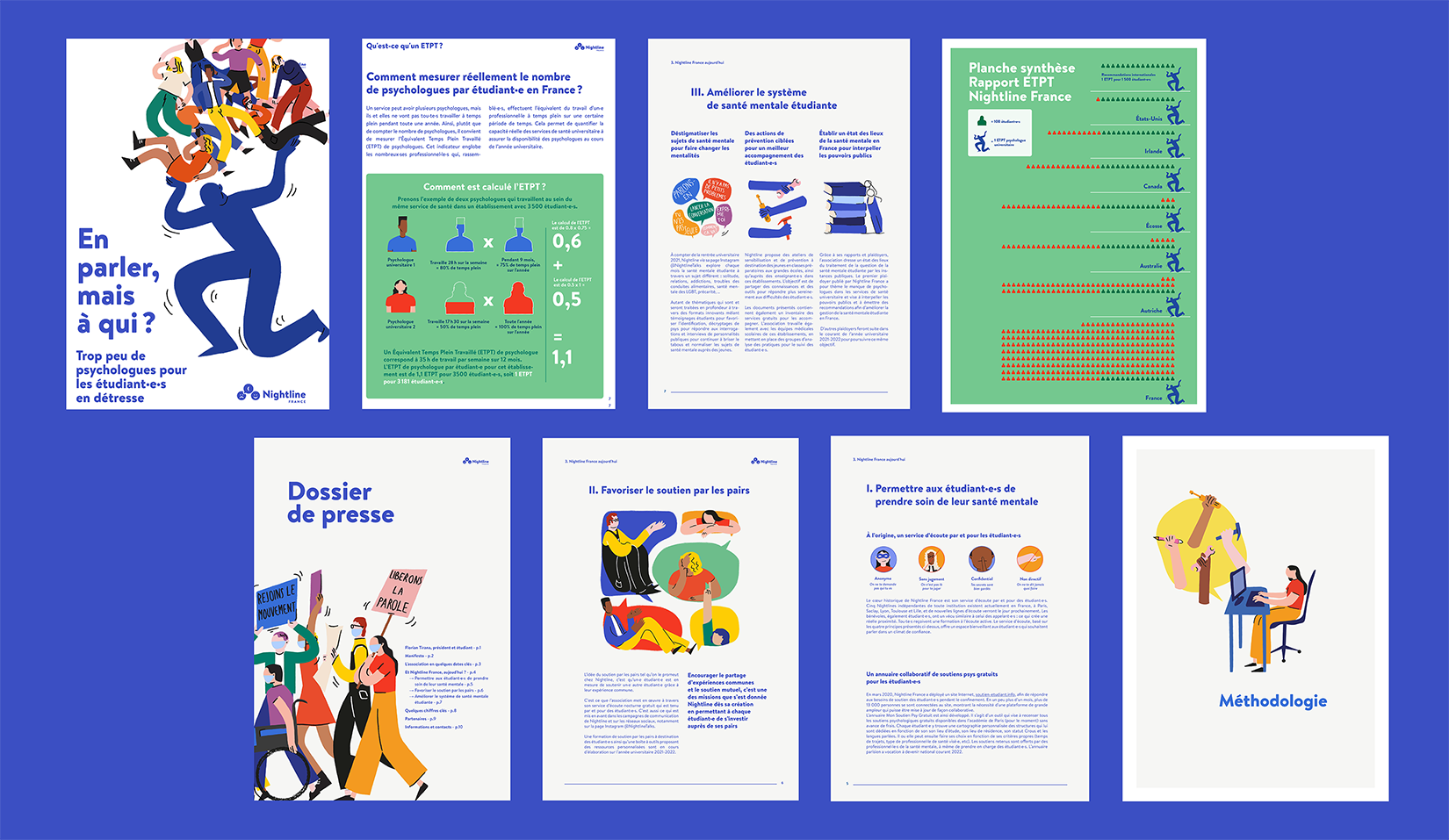 It is a student listening service association. With my tutors, we redeveloped the visual identity, so I was in charge of creating new illustrations for their website, posters, goodies, cards, their social networks and publications as well as to illustrate their