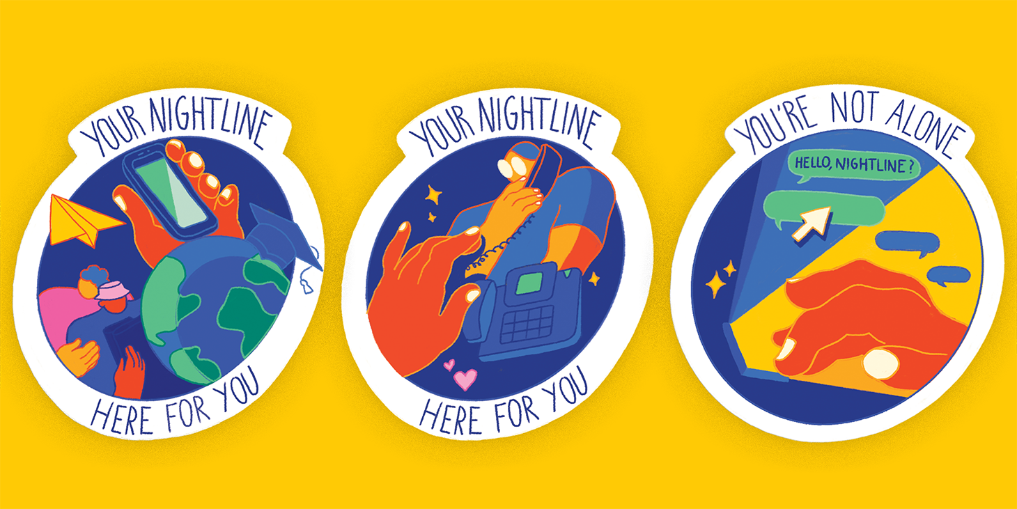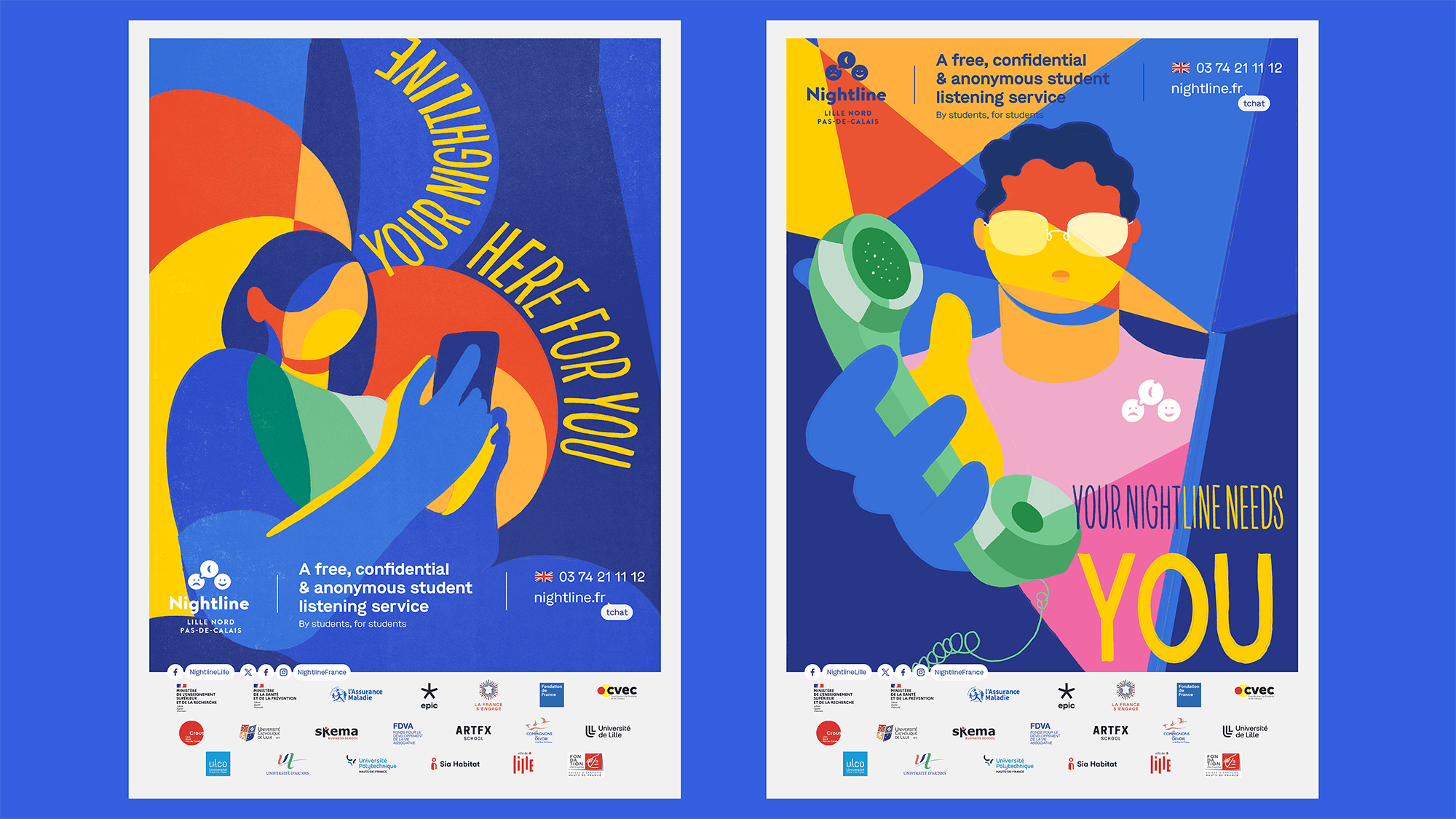 Commissions for Nightline's UK branch, for two printed posters and stickers, as part of their campaign to motivate students to participate in the association's activities. The visuals were used on goodies such as puzzles and handbooks.